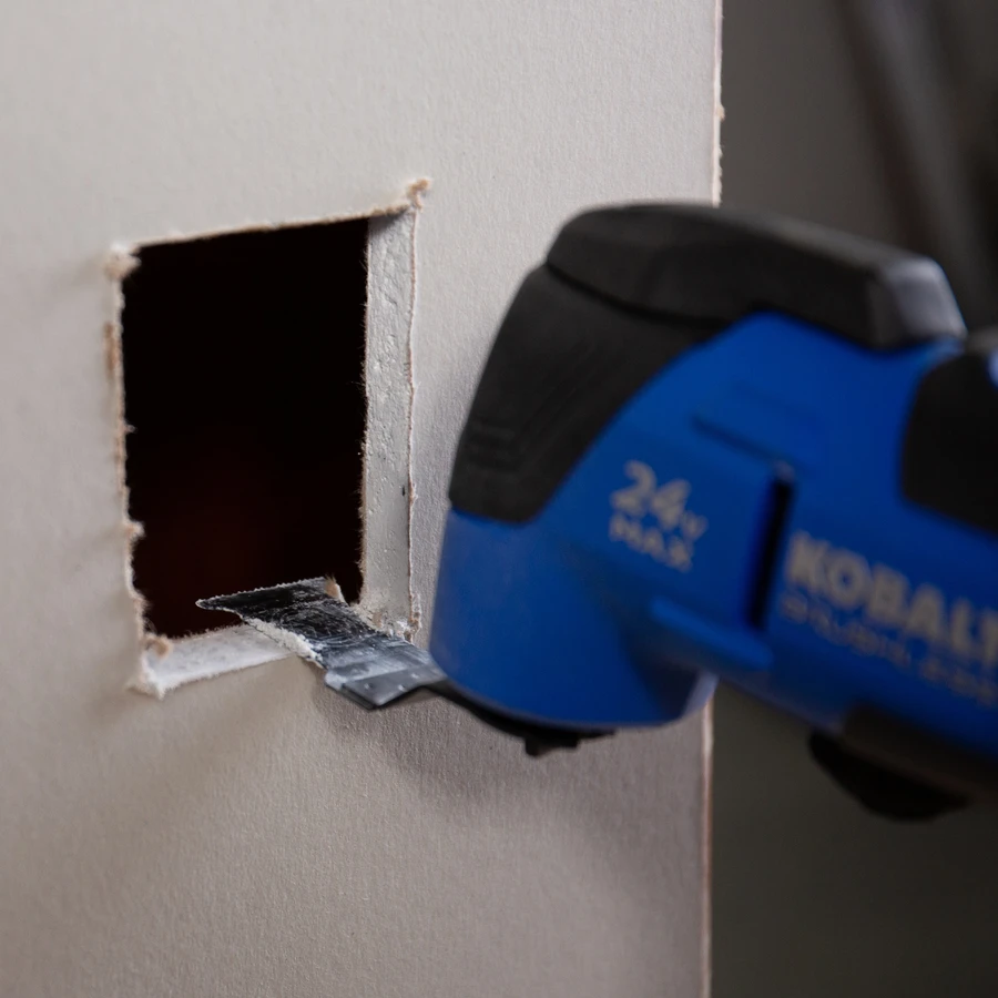 Whether you need a tool for grinding or cutting, this multi-tool will complete the job. Its brushless motor provides longer run time, but also produces 11,000-20,000-OPM. The tool-less blade change provides quick and easy accessory changes, reducing downtime on the job. An integrated work light ensures better accuracy in dimly lit work spaces. The kit includes: multi-tool, 9 sanding papers, base plate set, 3 plunge cut blades, scraper blade, grout removal blade, flush-cut blade, bag.This product is compatible with all Kobalt 24-volt max Li-ion batteries and chargers for your convenience (batteries and chargers sold separately) and comes with a 5-year warranty. Tool only.