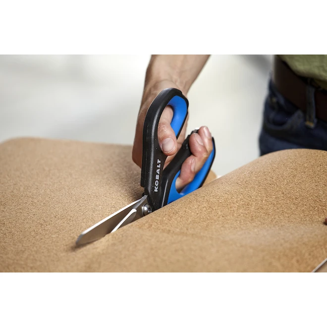 This 2-Piece Kobalt Scissor Set is a handy addition to your toolbox, crafting supplies, or general-purpose gear around the house. They have heavy-duty stainless steel blades that cut efficiently and are durable for the long haul. Their molded handles are comfortable in the hand. Scissors can also be sharpened.