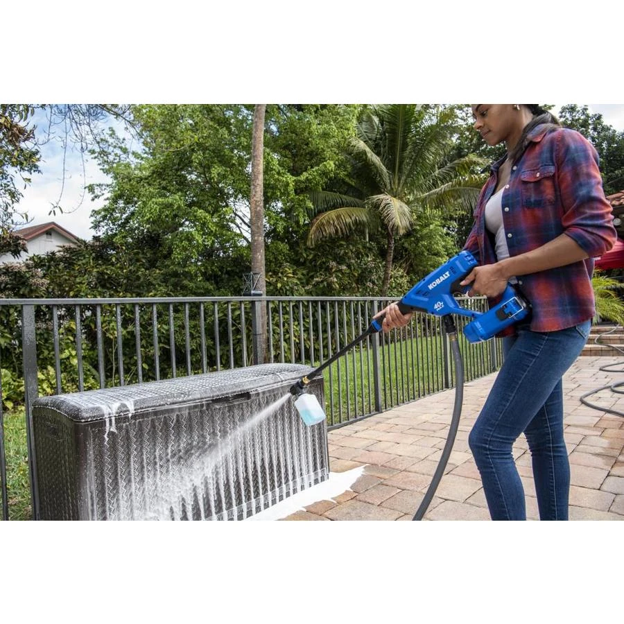 Compact, lightweight, and easy-to-use, the Kobalt 40-volt Power Cleaner is a must have. With 600 PSI at 0.8 GPM, there’s plenty of power for cleaning windows, outdoor furniture, cars, boats, campers, and more. It features a versatile 5-in-1 nozzle for cleaning dirt and debris from a variety of surfaces and works with any typical garden hose (3/8-inch quick-connect fitting is included). When a garden hose spigot isn’t available, the 20-ft self-siphoning hose pulls water from any fresh water source. The slip-resistant rubber moulded grip is comfortable and ergonomic for less user fatigue. When the cleaning is done and it’s time to store it in the garage or shed, the wand is super-easy to remove for more compact storage. The Kobalt power cleaner has a water-resistant battery compartment for added protection and is compatible with all 40-Volt Kobalt batteries.