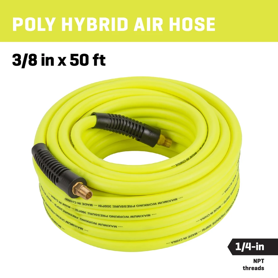 - Flexible poly hybrid air hose delivers 300-PSI for maximum working pressure