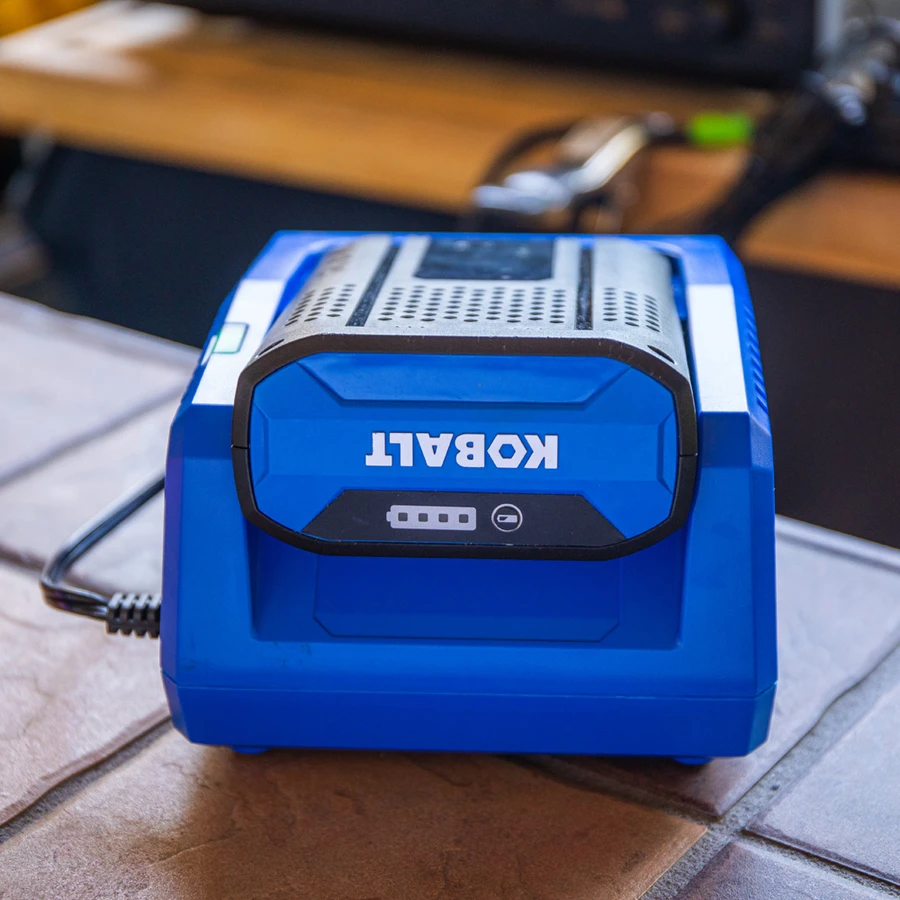 Recharge your batteries quickly and intelligently with this Kobalt 80 watt quick charger. It’s built to refuel 40 volt Max Li-ion batteries and ensure that your outdoor power tools are up and running again with minimal downtime. With its convenient LED charge indicator, you can easily monitor when your battery is fully charged. Compatible with all Kobalt 40-volt Max batteries and backed by a 3-year warranty.